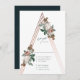 Um convite romântico para o casamento - cartão rsvp com lindos botânicos antigos no topo de uma pirâmide estrutural de ouro rosa.