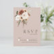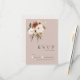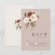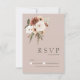 Placa RSVP de Casamento Floral Rustic Dusty Pink e Green. Convide seus convidados para o dia do seu casamento com este cartão RSVP de casamento elegantemente projetado com uma bela mistura de pêssego e flores verdes de azeitona em um fundo de ouro rosa. Este cartão RSVP de casamento tem um belo design floral e botânico, com vibrações rústicas e boho, perfeito para o seu casamento floral ou inspirado em flor silvestre. A disposição mínima e simples chama a atenção para o pêssego esmagador, elementos florais elegantes colocados sobre um fundo rosa dourado em greve. Este cartão de RSVP de casamento vai dar o tom para um belo cenário de casamento rodeado por decoração de rosa dourado e flores de pêssego e creme. Uma adição perfeita a qualquer celebração botânica ou boho-chic.