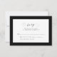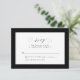 Com tipografia clássica e elegante, esta placa RSVP apresenta uma imagem em preto. Ele define o tom para um casamento eterno, elegante com sua redação formal e seu tipo. Foi projetado para coordenar Lea Delaveris com a coleção de casamento Simple Elegant. A cor do quadro e do plano de fundo é editável clicando em "Personalizar".