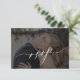 Cartão rsvp moderno minimalista elegante preto e branco, com resposta clássica ao casamento, apresentando um script de caligrafia de tendências e sua foto com sobreposição de texto. ++++++++++++ Fácil de personalizar com seus detalhes! Adequado para casamentos formais na moda elegantes. Download digital ++++ disponível