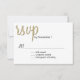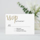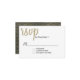 A resposta de casamento do na moda moderno RSVP é feita em branco com um ouro grande que o texto do script gráfico lendo rsvp, no topo, com o resto do texto em preto. A parte de trás é feita em uma cinza escura de carvão para um padrão de bolinhas de tom dourado. Personalize todo o campo de data do seu dia especial. O Amor Correspondente está nos produtos do casamento aéreo.