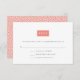 Leek, chic e moderno, estes cartões de resposta ao casamento ultra modernos apresentam "RSVP" definido em um elemento retangular em coral vibrante. Adicione a data de RSVP desejada, aceite e recuse a redação, e um campo para a participação de números em cinzas de carvão modernas sans serif lettering. Cartões invertem para um padrão-chave grego moderno opcional. PARA MUDAR DE COR: - Clique em "Personalizar" - Selecione uma nova cor na paleta ou clique no ícone de conta-gotas e, em seguida, em "Avançado" para acessar o espectro de cores do cheio e um campo de código hexadecimal para obter a máxima personalização. - Não se esqueça de mudar a cor da parte traseira do cartão.