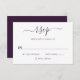 Cartão RSVP de casamento roxo minimalista, mas elegante, com uma letra moderna. Itens correspondentes disponíveis.
