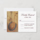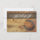 Cartões RSVP de Casamento Russo de Ferradura Ocidental em um fundo de madeira de celeiro. Apresenta uma ferradura solteiro no canto inferior. Basta adicionar seus detalhes de resposta ao modelo. ferradura cartões de rsvp de casamento, cartões de resposta, casamento no oeste do país