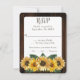 Mande aos convidados um simples e elegante cartão RSVP de Casamento Russo de Girassol com seu convite. O design de placa de resposta apresenta um fundo de madeira rústico com um buquê elegante de girassóis. Personalizar com as opções de data e menu de resposta. Material adicional disponível com esta design também.