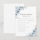 Cartão RSVP de Cerimônia de Casamento de Feriado Azul Dusty. Este na moda e elegante Convite para Chá de Casamento apresenta uma linda coloração d'água pintada manualmente Dusty Blue Ivory Floral. Localize itens correspondentes na Coleção Floral de Marfim Azul empoeirada.