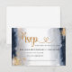 Cartão RSVP de Cerimônia de Casamento marinho e Dourado. Este na moda e elegante Convite para Chá de Casamento apresenta um Marinho de aquarela pintado manualmente e Dourado. Localizar itens correspondentes na Coleção de Marinhos e Dourados.