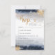 Cartão RSVP de Cerimônia de Casamento marinho e Dourado. Este na moda e elegante Convite para Chá de Casamento apresenta um Marinho de aquarela pintado manualmente e Dourado. Localizar itens correspondentes na Coleção de Marinhos e Dourados.