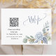 Simplifique seu processo de RSVP com esta placa RSVP de código QR flexível azul empoeirada. Apresentando elegantes flores azuis empoeiradas e soprando sotaques verdes, esta design combina beleza eterno com conveniência moderna. Os convidados podem examinar facilmente o código QR para responder, fazer-o sem esforço para reunir detalhes de presença ou preferências de refeição. Perfeito para casamentos com um tema rústico, vintage ou clássico, este cartão é totalmente personalizável para atender às suas necessidades exclusivas. Coordene-o com papelaria correspondente para uma suíte de casamento perfeita e sofisticada.