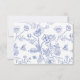 Regency Blue, cartões RSVP de casamento com nota alérgica de comida. Padrão floral de jardim do estilo Vintage Chinoiserie apoiado com a coordenação da tipografia azul.