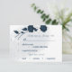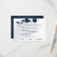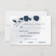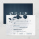 Placa rsvp botânica, personalizável e elegante, com opção de refeição, marinho elegante e flores brancas
