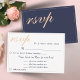 Cartão de RSVP elegante personalizável com opção de menu para um casamento. É perfeito para um casamento moderno e elegante. O texto está em uma escrita moderna e em cor de pêssego. O fundo está na cor azul da meia-noite. Este cartão de resposta do casamento pergunta aos seus convidados qual refeição eles gostariam na sua recepção e o número de menus. Você pode alterar as informações da placa para ajustado de sua necessidade. Este cartão RSVP corresponde a todos os itens da coleção Yellow Rose Midnight Blue Wedding, que você pode encontrar abaixo deste cartão.