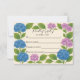 Complemente sua suíte de casamento com esta placa RSVP perfeitamente coordenada, uma extensão perfeita do seu convite inspirado na hydrangea. A parte frontal apresenta um layout agradável com um texto de exemplo de RSVP. Seu design limpo e espaçoso permite a personalização do cheio do texto, fonte e posicionamento para refletir seu tom exclusivo e sua experiência de convidado. Ao contrário, um monograma personalizado e a data do casamento acrescentam um toque refinado, criando que os convidados de lembranças amarão. Cada detalhe — da cor de fundo ao tamanho do cartão — pode ser adaptado para corresponder à sua visão, seja para vibrações audaciosas ou pastéis românticos e suaves. Na moda, funcional e inconfundível.