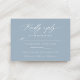 Perfeito para um casamento moderno, esses cartões RSVP de caligrafia apresentam um roteiro elegante em um fundo azul empoeirado, junto com a opção de os hóspedes selecionarem sua escolha de refeição.