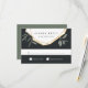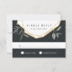 Projetado para coordenar com a nossa coleção de casamento Olive Leaf, esta nova carta botânica verde RSVP apresenta folhagem de galho de oliveira e elementos geométricos de ouro que ultrapassam a data de resposta desejada e aceita e recua a redação. Um rico fundo fora do preto adiciona um apelo dramático.