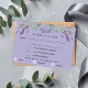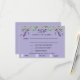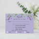 Um fundo violeta, texto preto. Decorado com flores de lavanda e verde de eucalipto. Personalize e adicione a resposta por seleção de data e menu. Voltar: Cor de fundo violeta.