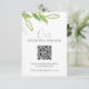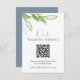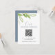 Economize em papel e dinheiro com esta placa rsvp botânica de cor d'água com código QR. Um design simples, porém clássico, este cartão de resposta do casamento apresenta um verde-aquarela original da artista Victoria Grigaliunas. Adicione sua personalização à caligrafia e à tipografia serif. A placa se reverte para uma cor azul sólida de cinza. Todas as cores são personalizáveis. Para mais convites de casamento, visite www.zazzle.com/dotellabelle