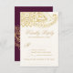 Este pedido de música paisley dourado da Índia é perfeito para um casamento elegante. O design mehndi apresenta um adorável hena mandala floral e motif paisley em um fundo burgundy. Crie sua lista de convidados de casamento e sua lista de músicas de dança de uma só vez! Este cartão de resposta do casamento convenientemente pergunta aos hóspedes se eles serão capazes de ir ao seu casamento, e também que música os fará dançar. Nota: Este design não apresenta folha de ouro real. É um gráfico de alta qualidade feito para se parecer com folhas de ouro.