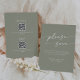 Este boho chic sage green QR code detalhes e o cartão rsvp é perfeito para um casamento minimalista. A moderna design boêmica verde-luz neutra apresenta uma caligrafia rústica simples com um estilo único, mas clássico. Combine o RSVP on-line e a placa de detalhes com esta placa de gabinete com 2 códigos QR. Insira seus endereços da Web na seção de código QR do modelo e os códigos QR serão automaticamente atualizados e vinculados ao seu site. Este modelo pode ser usado para vincular detalhes, rsvp, registro, caixa, site de casamento e muito mais.