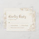 Uma surpresa botânica do ouro de marfim, 50º aniversário de casamento, cartão RSVP. A design minimalista moderna apresenta sotaques botânicos e fontes de script de tipografia. Simples cartão floral perfeito para uma festa de na moda.
