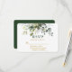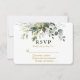 A Carta RSVP de Casamento Botânico Elegante Moderno de Aquarela Botânica inclui folhas de eucalipto, folhagem botânica verde, folhas azuis empoeiradas e outros belos lençóis botânicos. Script verde e Dourado.