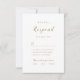 O roteiro do cartão rsvp romântico do casamento e os detalhes elegantes do evento de fonte em cores douradas, modernos e simples, excelente para casamento formal minimalista, casamento clássico tradicional, casamento simples moderno. Veja todas as peças correspondentes na coleção.