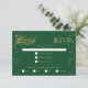 Dourada pinheiro com cone confetti esmerald verde cartão de casamento de Natal RSVP. Uma adorável design de casamento que inclui um cone de pínus dourado e agulhas e bordas de confete dourado sobre fundo verde. As costas estão cobertas com um confete de ouro.