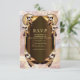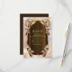 Um design de caçador de sonhos com guarnições douradas e marrons que inclui uma teia redonda de vida em círculo de bambu com penas castanhas e miçangas vermelhas em um fundo de pena macia para um casamento.