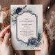 Cartão RSVP Dusty Blue e Marinho Floral Elegante Casamento