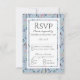 O cartão RSVP elegante, moderno e muito na moda mostra um padrão floral de aquarela com fundo DUSTY BLUE. Personalize seus detalhes na frente. O inverso é um plano de fundo AZUL DUSTY com RSVP em um sutil padrão. Parte da coleção FLORAL DUSTY BLUE de Designs Bereanos.
