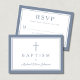 Cartão RSVP Dusty Blue Religious Cross Boy Baptism