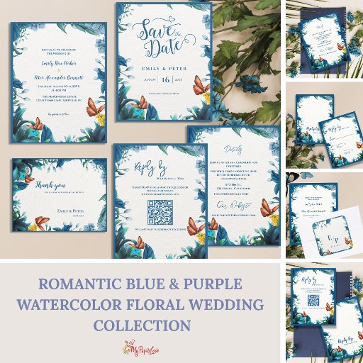Blue Green Botanical Butterfly Wedding StationeryCriado por Mypaperlove Designs