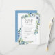 Lindas flores de peônia brancas e folhas em aquarela verde formam uma bela moldura neste cartão de confirmação de presença para casamento floral azul com opções de refeição. Um cartão de resposta moderno e sofisticado para um casamento em jardim ao ar livre. Linda borda