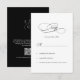 Apresentamos nosso sofisticado e elegante Cartão de Resposta de Casamento com Caligrafia Preta e Branca. Este design elegante apresenta um fundo branco com elementos e fonte pretos, criando um visual atemporal e sofisticado.