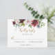 Cartão RSVP Elegante Noivado Naval Borgonha com Flores e Verdu