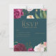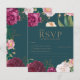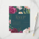 Este cartão de resposta de casamento floral esmeraldo verde e dourado apresenta rosas de aquarela e peônias em cor vermelha, branca e rosa,Um cartão rsvp perfeito para queda e casamentos no inverno de verão de sopras formais e clássicos.
