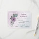 RSVP de cartão de resposta único com flores roxas e azuis e folhas verdes românticas empoeiradas com opção de refeição. PARA MAIS PRODUTOS CORRESPONDENTES, clique na coleção acima ou entre em contato comigo.