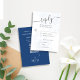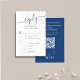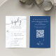 Um cartão RSVP de escolha de farinha de código QR floral com um modelo de cor-d-água elegante floral azul, um script de caligrafia moderno mínimo, com rosa azul boêmico, uma folha de folhagem verde minimalista, uma folha de folhagem verde tradicional rsvp convidado, uma cor azul-elegância romântica, um site de resposta de convidado web, uma suíte de papelaria floral azul, uma resposta de convidado via website