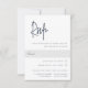 Projetado para combinar com nossos convites de casamento de Script Manuscrito Moderno. Uma bela design baseada na tipografia, com um toque minimalista, com um roteiro manuscrito azul-marinho moderno e uma letra serif clássica. Personalize com a data de RSVP desejada e as opções de refeições no canto inferior direito.