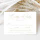 Cartão RSVP de casamento minimalista e moderno com a data de RSVP, o personalizado aceita/declina o texto e as opções de refeição. "Resposta gentil" é exibido em um script de caligrafia dourada. O fundo branco pode ser alterado para uma cor de sua escolha. Projetado para coordenar com a nossa coleção de casamento do Modern Elegance.