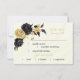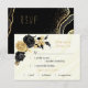 Cartão botânico elegante e personalizável de rsvp com opção de refeição Flores elegantes pretas e douradas com algumas folhas sobre fundo de mármore branco e ouro Os detalhes de brilho e folha de alumínio são simulados