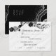 Cartão de mergulho botânico elegante e personalizável com opção de refeição Flores esbeltas pretas e prateadas com algumas folhas em cinzas prateadas e fundo de mármore branco Os detalhes de brilho e folha são simulados