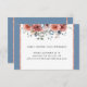 Peça aos seus convidados para confirmarem a sua presença com um cartão elegante de lista de convites. Buquê floral de aquarela delicada com flores em tons azuis, cor-de-rosa, marfim e azuis empoeirados. Frente e traseira da placa com tiras de brilho rosa douradas sobre fundo azul empoeirado. Coordenação dos convites disponíveis.Também disponível em espanhol. Parte da nossa coleção de casamento e eventos "Feliz Floral".