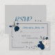 Cartão RSVP Flores azuis e brancas marinhos botânicas
