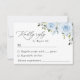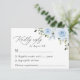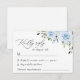Preencha a sua suíte de papelaria de casamento com este cartão RSVP de na moda. Design apresenta flores azuis poeirentas de cor d'água e verde sobre fundo branco.