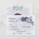 Cartão RSVP Flores azuis roxas folhas verdes casamento