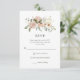 Este simples e elegante cartão de resposta de casamento rsvp apresenta um buquê rústico boho de flores aquáticas e verde em tons neutros de pêssego terracotta e marfim, em um fundo branco. A frente do cartão é um cartão de resposta por e-mail mais tradicional, enquanto a parte traseira do cartão apresenta um código QR e seu site de casamento para convidados que preferem RSVP online.