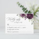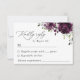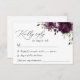 Preencha a sua suíte de papelaria de casamento com este cartão RSVP de na moda. Design apresenta flores roxas de cor d'água plum e verde em fundo branco.