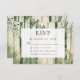 Este elegante e moderno cartão RSVP de casamento apresenta um fundo de paisagem da floresta de cor d'água rústica em tons de verde e ouro O texto personalizável da cinza de carvão aparece em uma tela branca retangular. A cena da floresta é repetida no verso da carta.