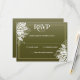 Cartão RSVP Folhas Brancas Elegantes, Verde-Oliva